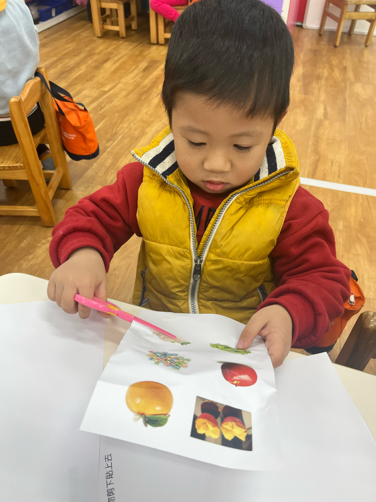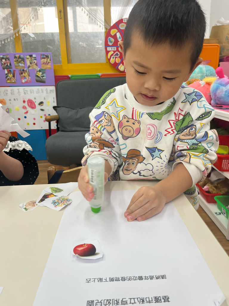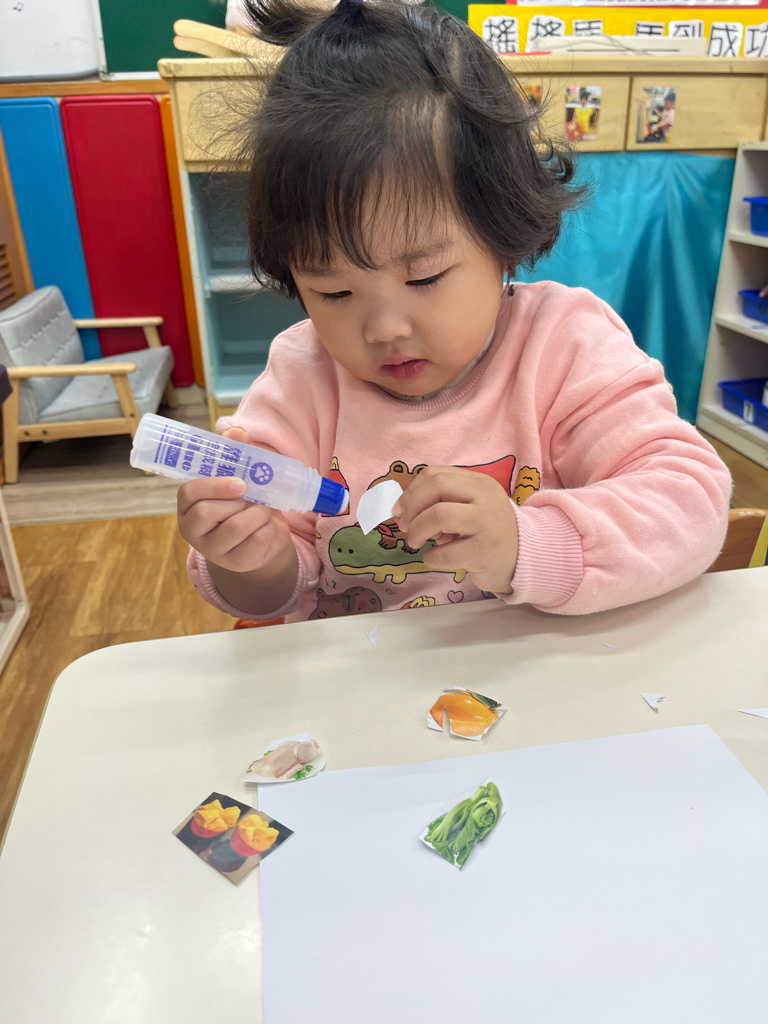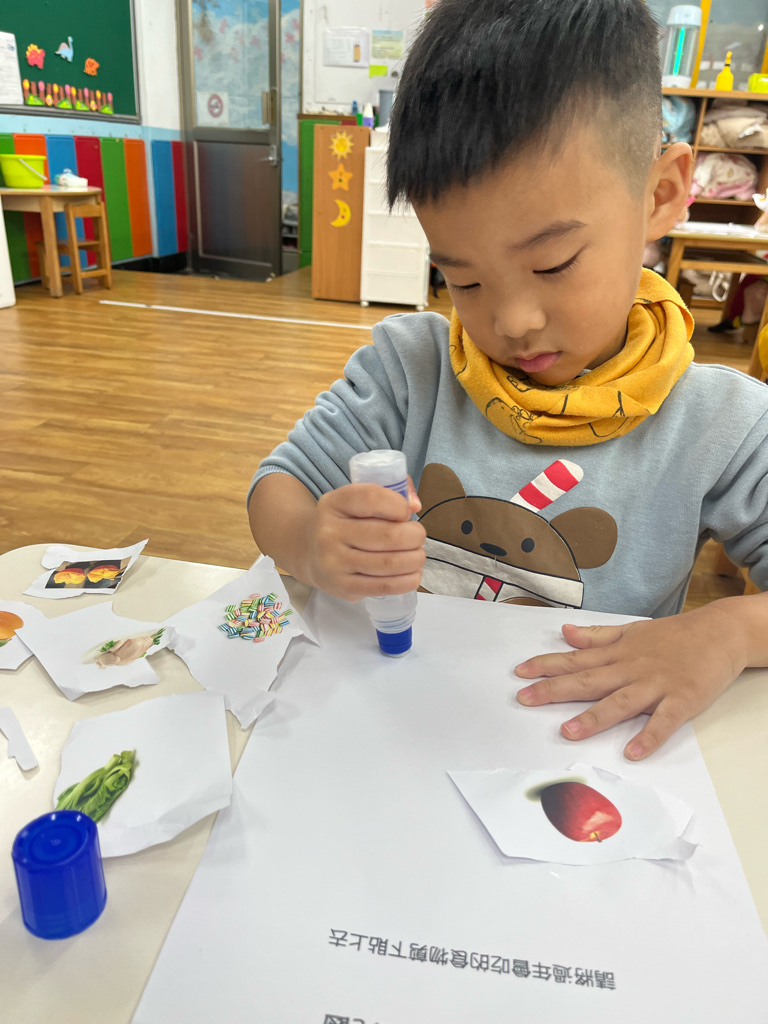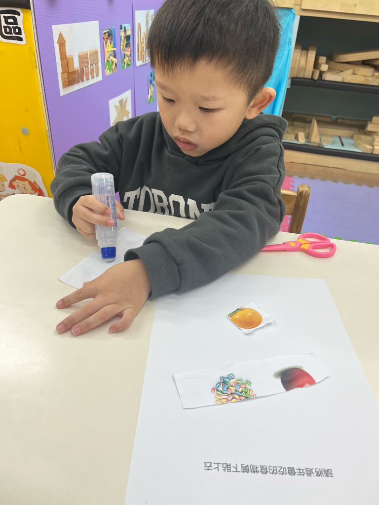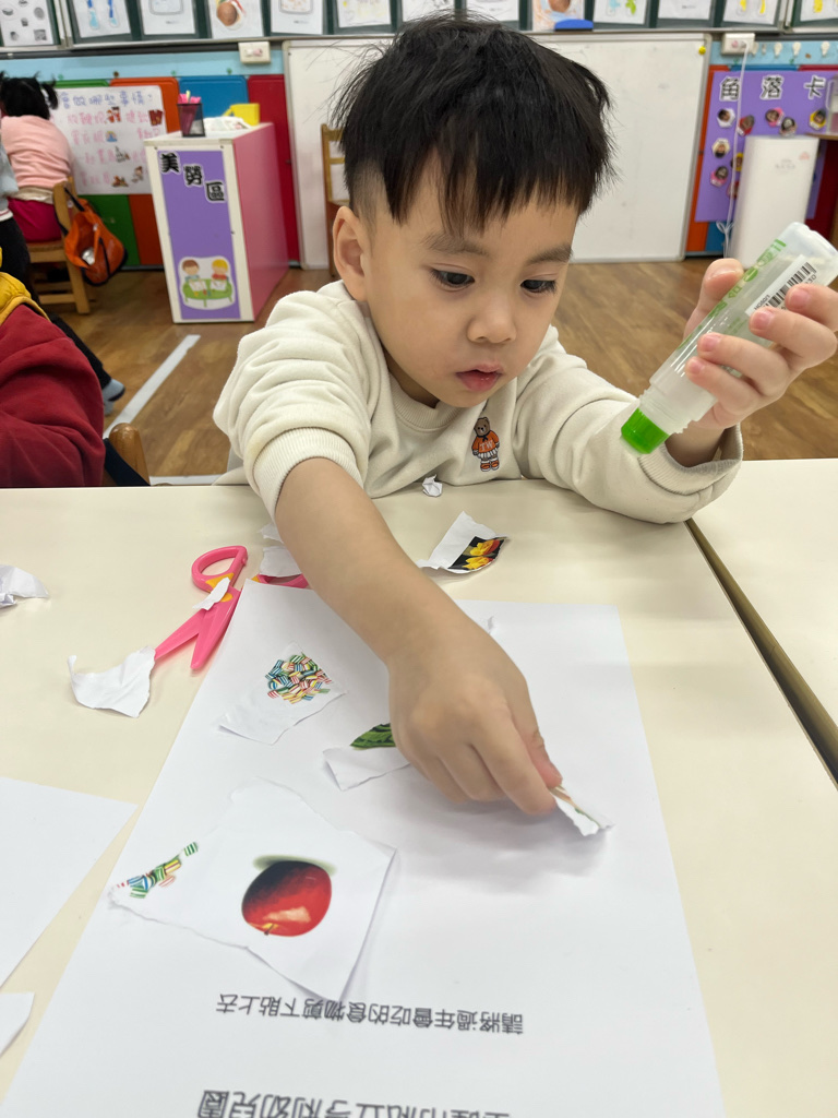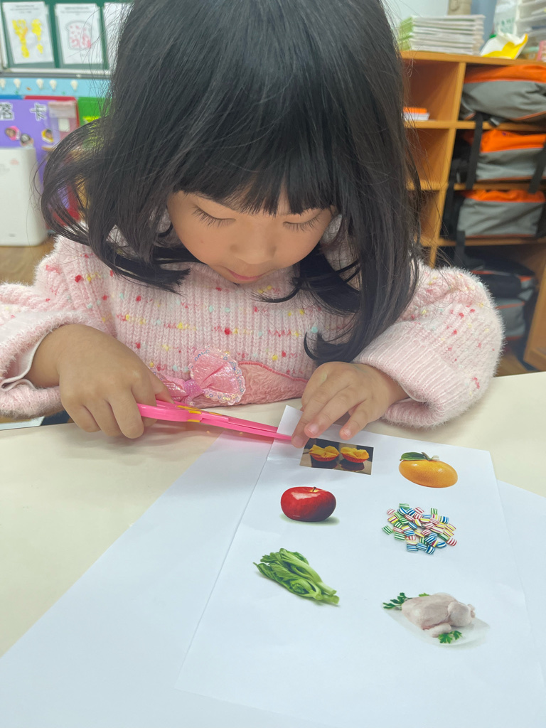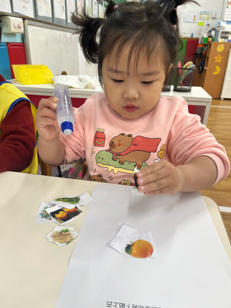 剪貼過年會吃的食物(使用圓頭的安全剪刀練習剪紙,訓練精細動作及開合動作)