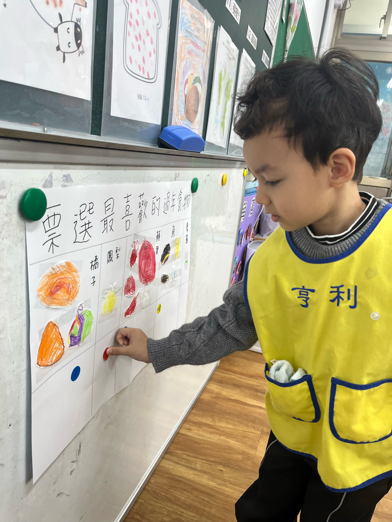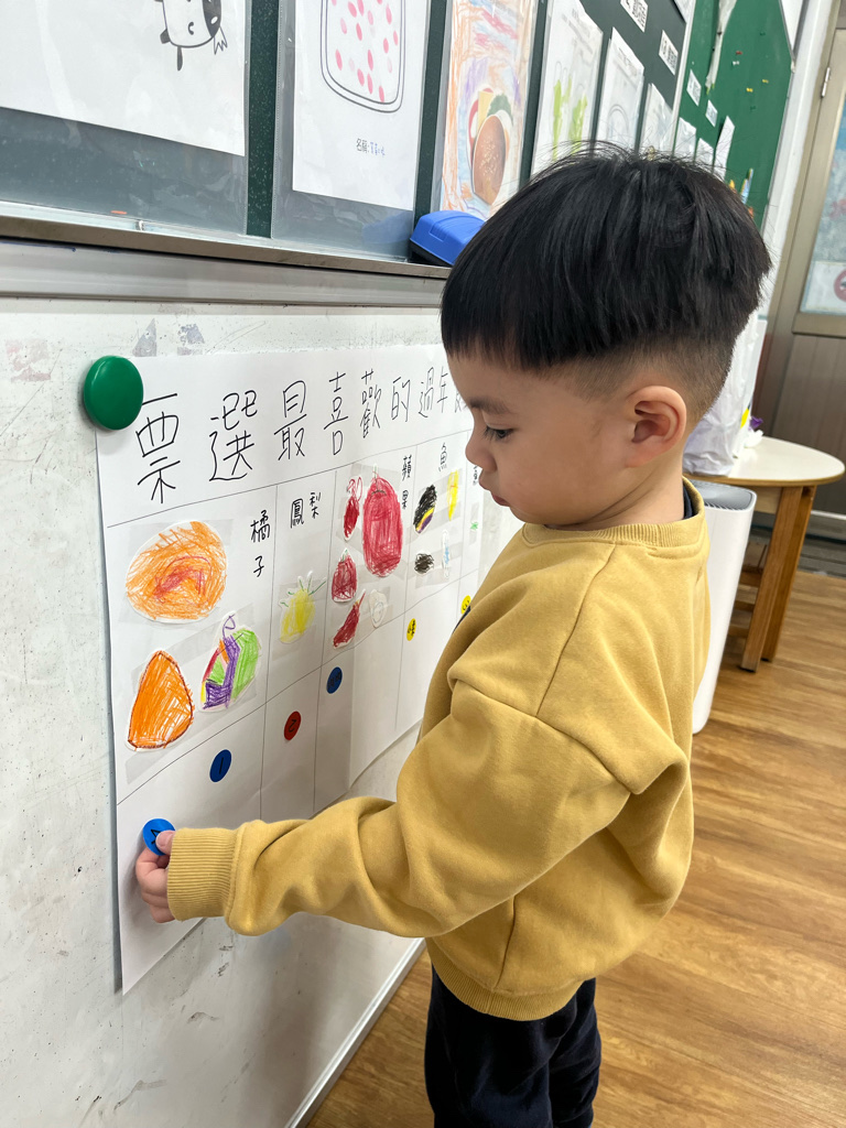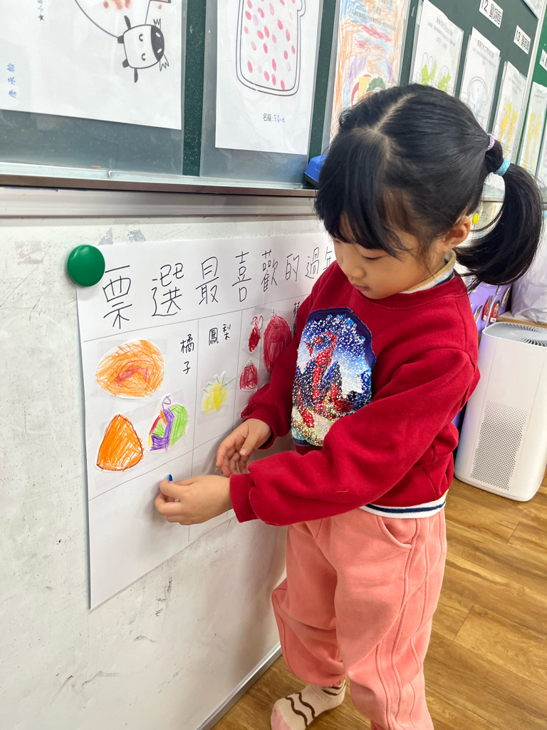 先畫過年會吃的一種食物,最後統計成一張經驗圖表,接著綜合大家畫的圖,票選最喜歡的過年食物